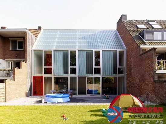 比利时修建事件所dmvA architecten计划的“BVA室第”为一座两层高的私家别墅,项目位于比利时蒂伦豪特(Turnhout)的一个室第区中。修建以传统的坡屋顶造型夹在摆布相邻的修建物之间,修建前后采取了截然不合的修建表皮,临街立面较封锁,以包管室内空间的私密性,朝向庭院的立面则完整通透,可浏览到庭院内的糊口场景。