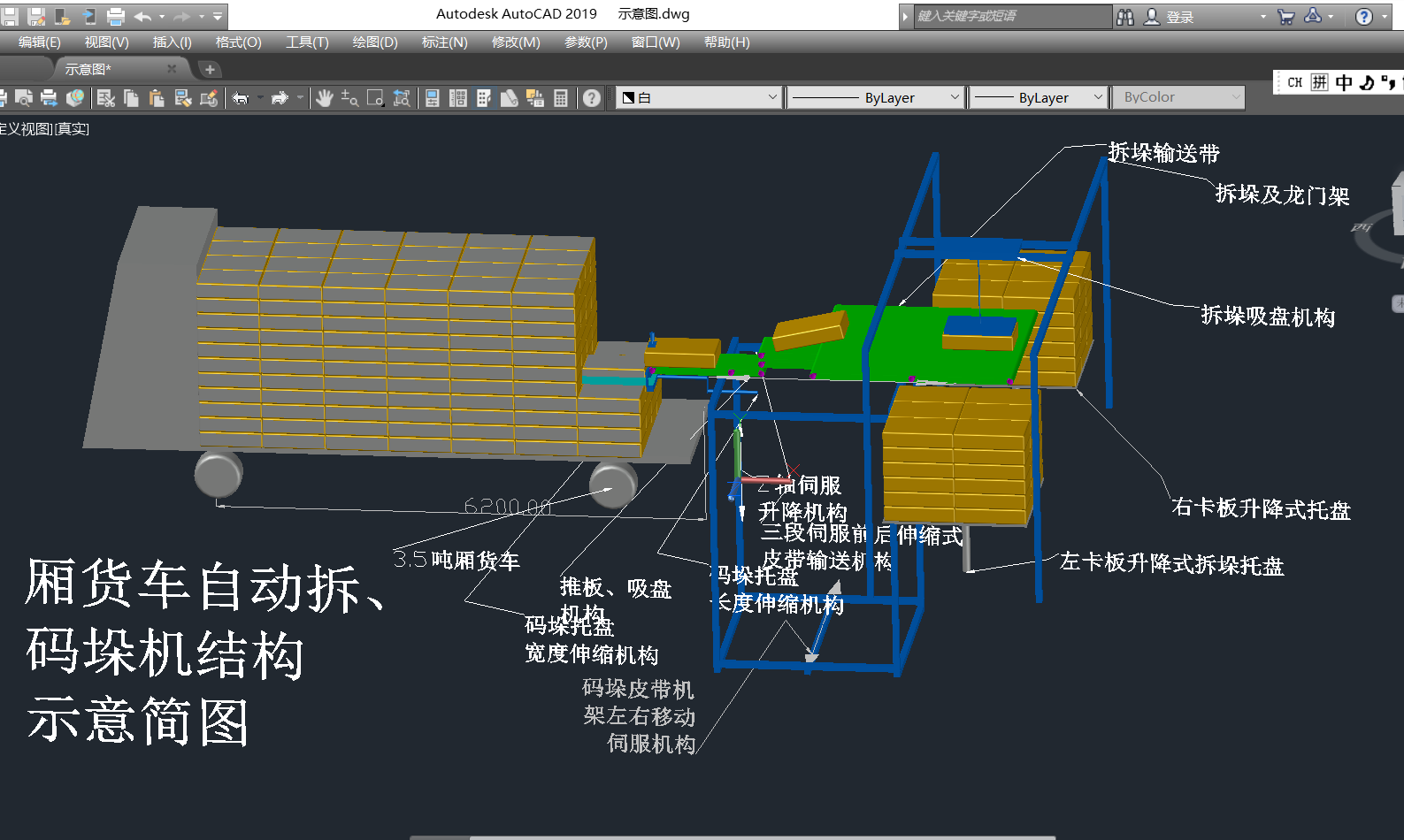 2.5、3.5吨厢式货车袋装散料无冗余空间自动装、卸车机,适应50kg饲料、肥料、面粉、糖盐物料自动装卸车,装车效率1200袋/h,