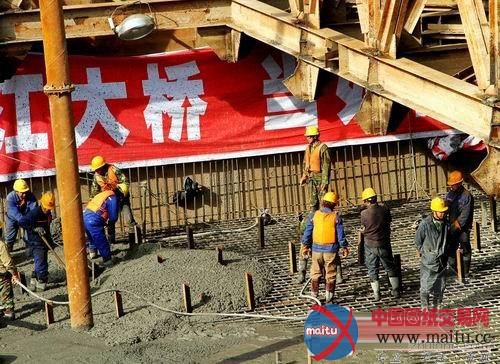 黄冈长江大桥3号墩承台浇筑完毕再创新纪录