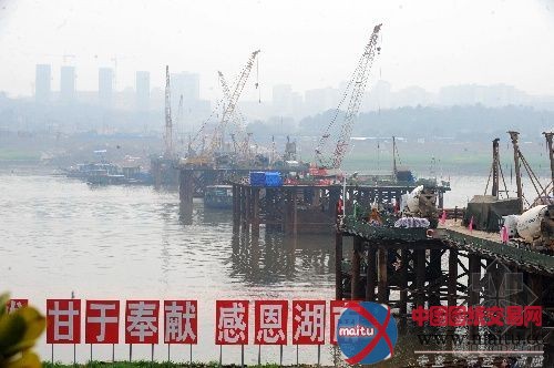 长沙,2011年3月16日 长沙湘府路湘江大年夜桥抓紧桩基施工 长沙市湘府路湘江大年夜桥水下主墩桩基施工现场(3月16日摄)。 克日,长沙市湘府路湘江大年夜桥水下主墩的桩基施工全面启动。湘府路湘江大年夜桥工程全长2.655千米,主线桥梁全长1.785千米,概算总投资7.84亿元,打算2012年7月全面完工通车。