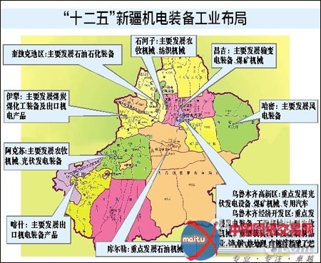 别的,一其中心,即以乌昌地区为中心;两条财产带,即北疆财产带和南疆财产带;六大年夜集群,即输变电设备、风电设备、光伏发电设备、农牧机器、石油石扮设备、汽车;八大年夜财产,即输变电设备、新能源设备、农牧设备、石油石扮设备、矿山设备、修建及工程机器、机器根本制作业。