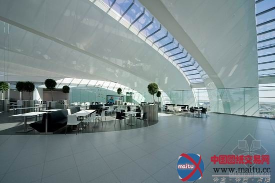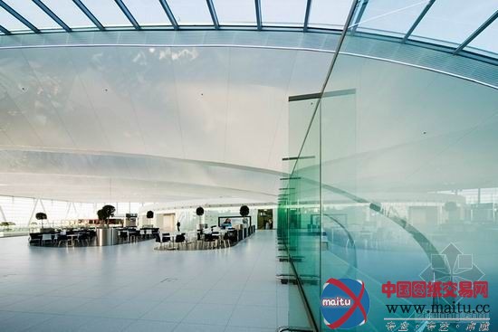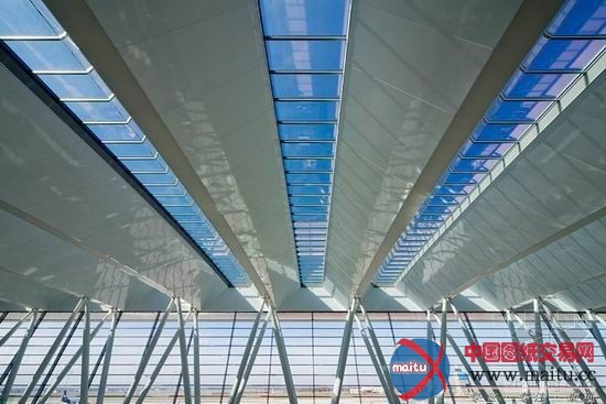除空中中心空间以外,修建师还计划了一个可以向外远看都会和天空景不雅的垂直透明布局体。机场室内墙面选用了一种白色反光金属板,为短暂逗留的搭客创作发明了一个漂渺轻松的空间氛围,而设置在二层的巨大年夜阳台作为安息区为搭客们供应了一个可以不雅看到机场繁忙活动的抬升平平安台。