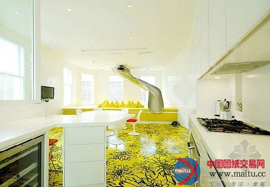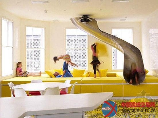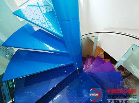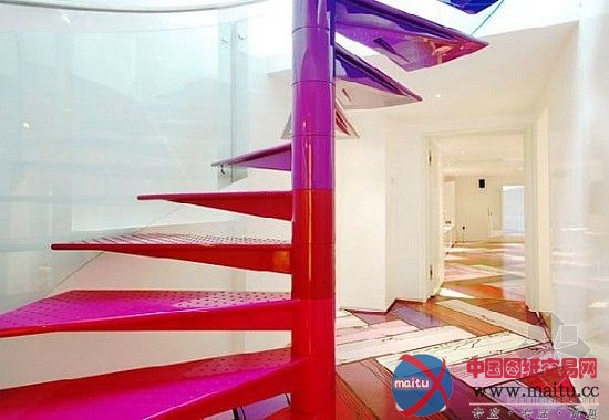 这是位于伦敦的彩虹屋, 由AB罗杰斯计划完成。房子的美丽的色采和图案让人非常夺目。客堂本身就是一个古迹,在垫子上的一其中心地区气动起落激发创作发明一个坐位坑或高架游乐区。最惹人进胜的细节,全部的彩虹色的螺旋楼梯,蜿蜒穿过全部 3 楼层,钢铁和玻璃纤维的定制楼梯提高经由过程色彩的彩虹。在每个级别,色采的楼梯影响调色板,建立一个可视化的节拍,经由过程垂直移动的房子。而色采也援引了彩虹的7中色彩,看上往非常亮丽,这是年青人的天国。