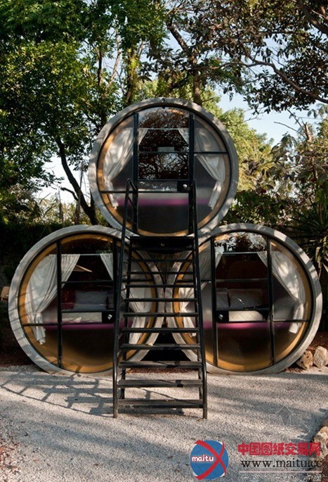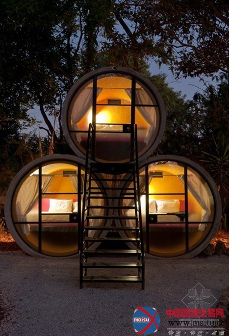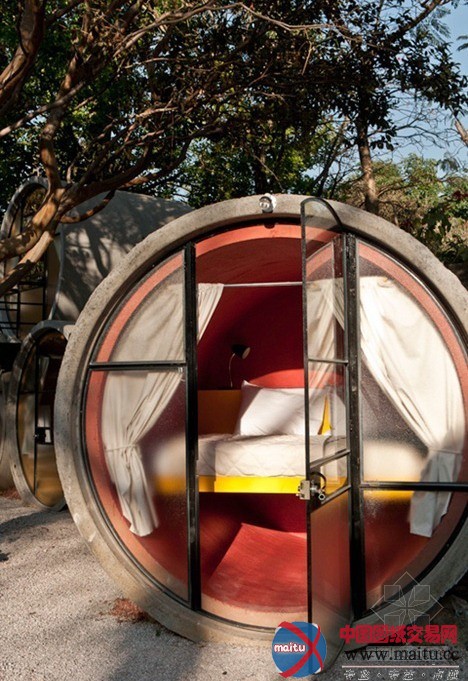 这个是一个旅店,不外是一个颇具创意的旅店,你必然想象不到,在混凝土下水管中也能安息吧。不错,TuboHotel就是如许一个用混凝土下水管道组建而成的旅店。从图片看,只看到一个安息空间,床展置于管内的三分之二处,你可以比较便利的进进安息区。但是没能看到卫浴空间,或许便利的处所到处都是。 管口处用铝合金加上透明的钢化玻璃封壁,当然看上往简略的只留下简略了,但是对一些渴看刺激,想感触感染露营观光的人或许这是一个不错的选择!
