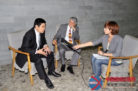 凯里森中国CEO杨砚(左)和凯里森计划总监及合股人Ro Shorff(中)在接管筑龙网采访