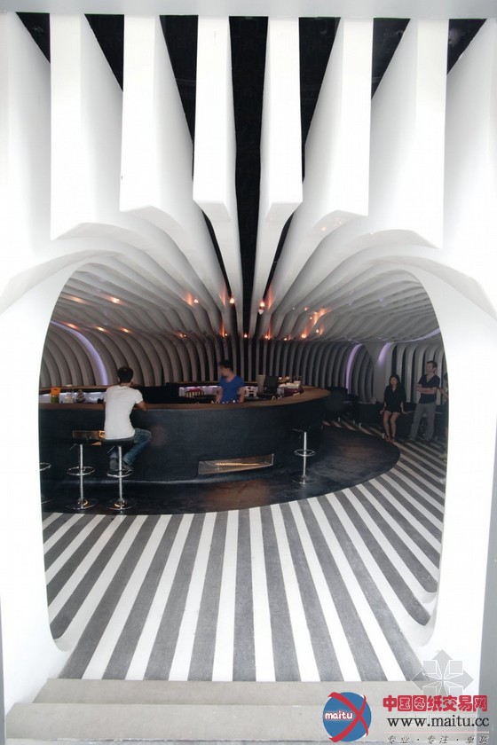 这是位于上海淞沪路创智寰宇 KIC Plaza 的一个LiveHouse 酒吧,叫Zebar,占地569 平方米。这个项目是由 3Gatt 修建事情室来计划的,总计划师叫Francesco Gatti。因为在资金的方面的限定,修建师奇妙的应用看似庞杂但是简略的多少的斑马线条框架计划出这个有机形状的空间。但现在看来,到成了这个酒吧的特色地点。