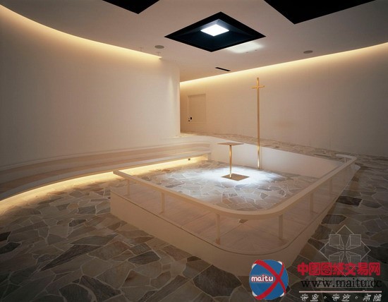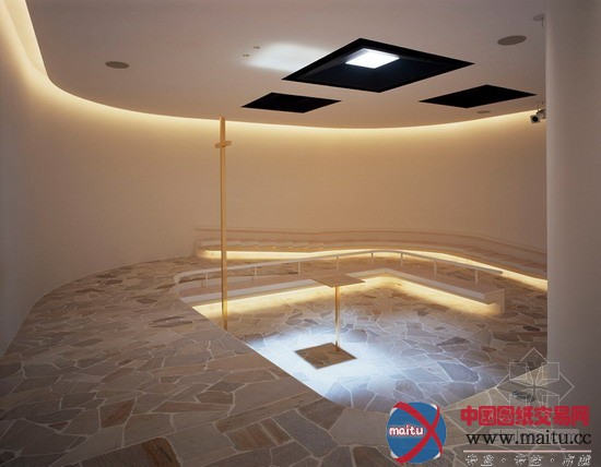 一个伶仃进口向锥形的安息厅开放,白日这个空间被充足的天然光芒照亮。应业首请求,这座会堂须要展现一种戏剧化的对比结果,并在修建尽头营建一种“洞窟式”的深邃氛围。中心会堂被连续的曲线墙面围困,在视觉上耽误了空间的外缘。一个徐徐起伏的坡道绕空间内部扭转,座椅从曲线墙面和台阶上凸起出来,构成L形的长凳。一个小天窗被安装在会堂的中心地位,可以将戏剧化的光芒投射到举行典礼的新婚伉俪身上。