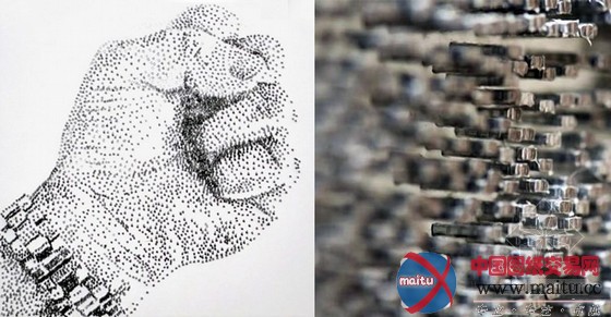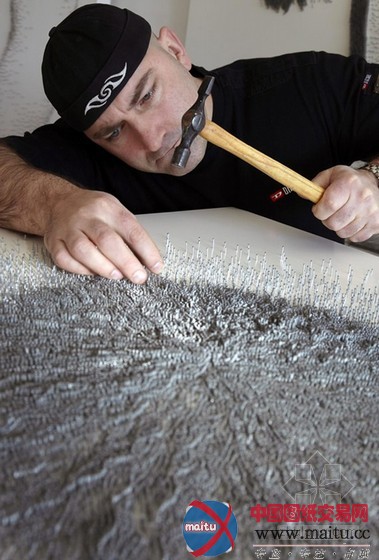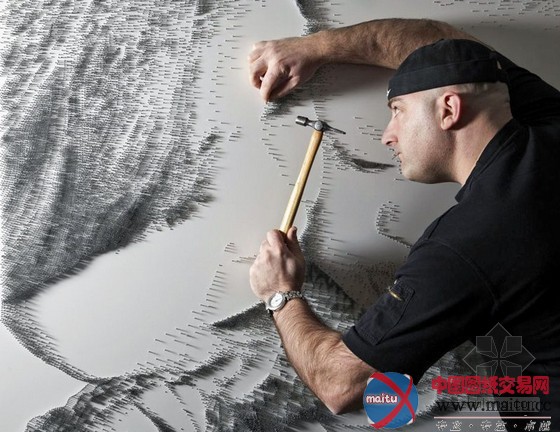 英国艺术家 Marcus Levine 用锤子将钉子一根一根地钉在木板上,用物理情势再现点画法绘制出了一组令人诧异的艺术作品。全部的作品都是徒手完成的,没有画任何草稿也没在木制面板上做任何标识表记标帜。平均每幅画要大年夜约用到15000颗钉子,但有些作品单幅就要利用超越50000颗钉子。