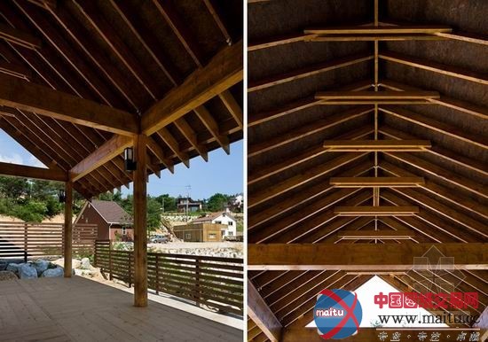 这个当代的修建计划计划经由过程韩国传统木构造和镶板木门等计划细节,与韩国传统营建体例有机连络在一起。进口掩躲在户外游廊下方,修建师用一系列宣纸樊篱来分别空间,创作发明了一个毫无遮挡的开放性空间布局。住户要经由过程一个梯子方能达到阁楼寝室,同时能俯瞰首层的起居空间。