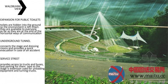 一只由门生构成的团队计划柏林奥林匹克公园‘network’景不雅计划的比赛作品,该作品获得了2011年迅达奖。network是从修建角度建立的思惟,用哲学的不雅点对待问题。它的目标之一是经由过程建立明白的布局和天然辩论实现的回属感。