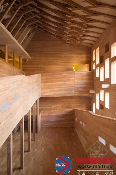 这个计划采取了日本传统的木建构技术,整座校园几近都是用长野县的木料制作而成的。修建团体情势和屋顶被计划成了风趣的倾斜体,参不雅者可以从外部清晰的辨认出这座奇特的修建物。黄色的树枝状布局凸起了修建的团体构架同时同样成为这一地区极其夺目标视觉标识。