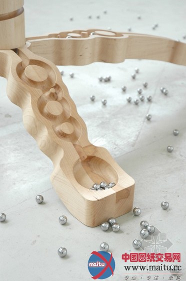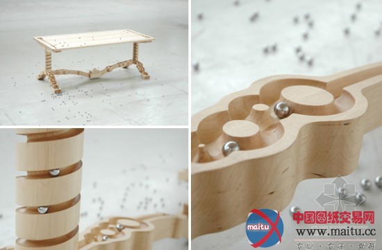 荷兰Nathan Wierink 和 Tineke Beunders 计划的餐桌。这个餐桌利用木头为首要材料,称作“Marbelous”,充满了轨道,滚珠可以一起观光到地板。是以,它有两个感化:作为一个普通的餐桌,作为一个完善的休闲文娱举措措施,因为可以相称轻松的地不雅看弹珠如安在桌腿一起下滑。