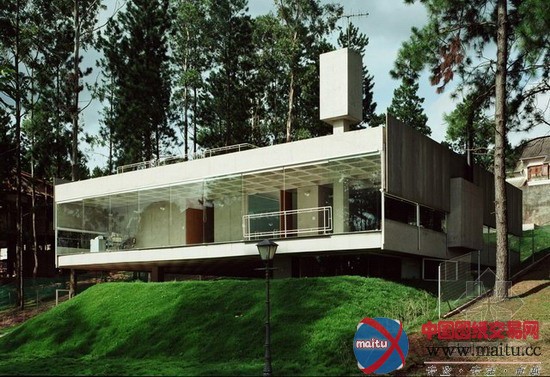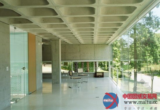 山林别墅全部墙体为水泥沙浆抹灰,没有任何润色,全部玻璃皆为无框构造。修建材料间对比猛烈,雕塑感实足,这点特别非常近似大年夜师柯布西耶的伎俩。