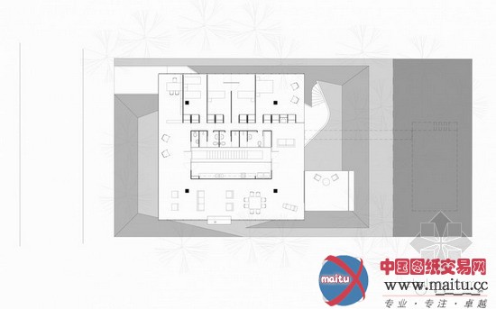 修建利用混凝土的可塑性构成900 x 900的密梁楼板。全部功效在一个16.20米见方的范围内办理,修建中心为核心办事区,会合楼梯,卫生间和厨房举措措施等。这座山林别墅经由过程四根混凝土柱子把首层架空,进口正位于架空层之下,经由过程一条楼梯连接修建内部,这便很好地办理了本地潮湿带来的问题,使修建易于通风干燥。二层起居室部门有一块伸向山坡的露台,如许即便在二层也能到户外享受阳光。修建师把屋顶悉数计划成水面,经由过程首层的楼梯可直接达到,同时水面与周边的山坡高地间通太小桥连接,因而修建便构成了一条回路。