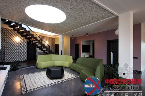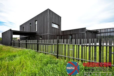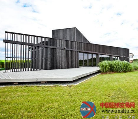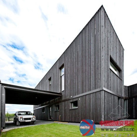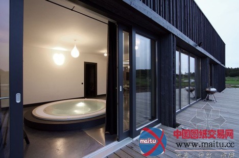 OPEN AD计划的室第高两层,位于拉脱维亚都城里加周围。从屋顶露台可以瞥见环抱之间的金属灰木梁。从一楼的两个寝室的门可以拾阶而长进进上层的露台,上面的一个开放式的栖身空间经由过程一个圆形屋顶灯可见。在一楼第三个房间,可用作客房还可以作为一个水疗中心。这座黑色混凝地盘板的房子,背后的外部船面由木料板构成。