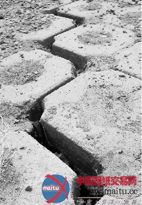 小区地面呈现多处裂痕,施工方称这属正常征象,不会对房子产生影响。