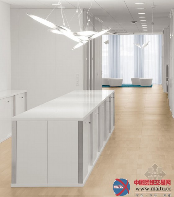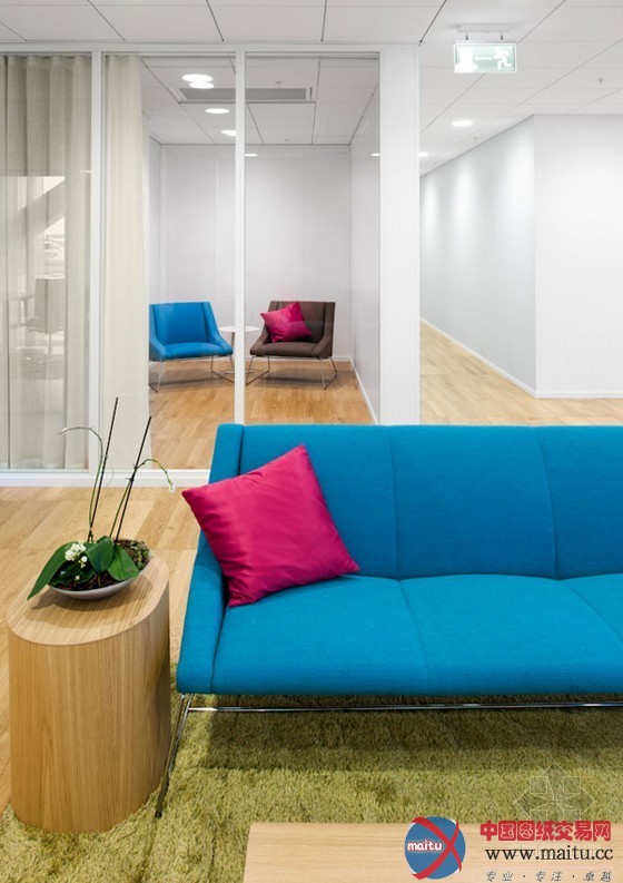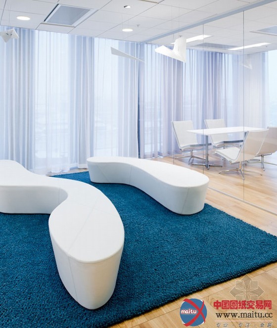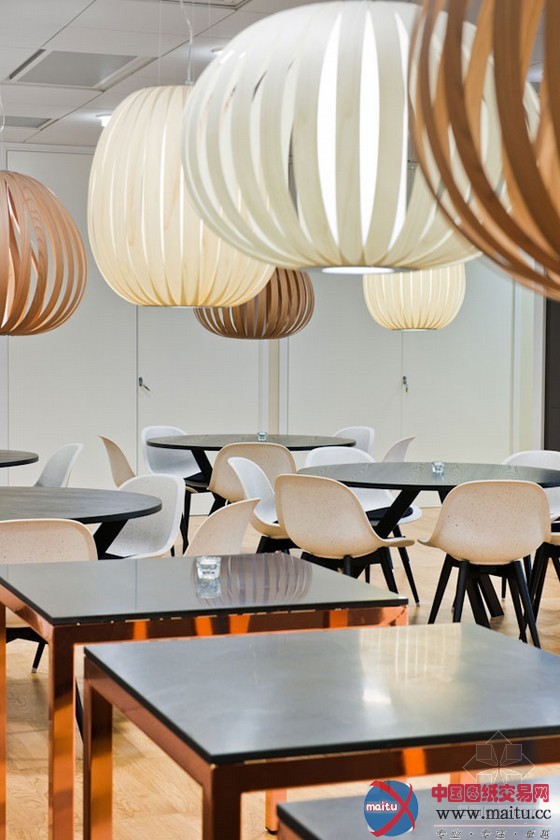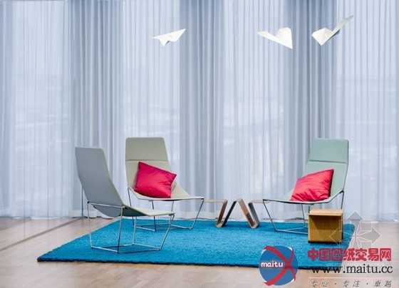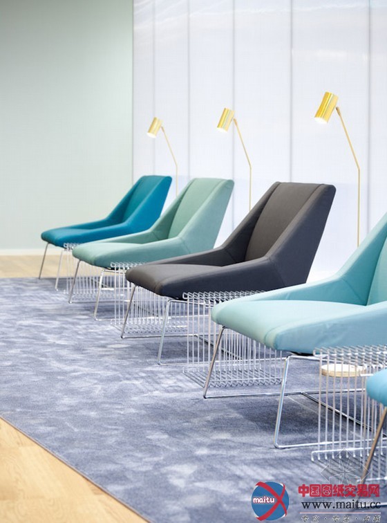 这是由瑞典修建事件所 pS Arkitektur 计划的瑞典航空导航办事供应商 NUAC 位于斯德哥尔摩市中心 Waterfront Building 中的办公空间,全部空间反应出 pS Arkitektur 一向简约清爽,色采光鲜的计划气焰,天空元素始终影响着家具和灯具的选择,如家具、地毯和窗帘中不合纯度的蓝色,造型如云朵一样的白色安息椅,精致的纸飞机装配使空间变得活泼而轻松。而餐厅中则利用了热色调搭配,为了达成一种热和的小餐馆的氛围。