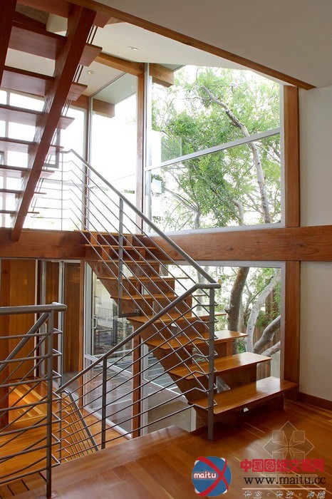 Jesse Bornstein Architecture计划圣塔莫尼卡的树屋,是对旧有房子的改革,房屋的墙壁,屋顶架,梁,雕栏,经由过程釉面启齿,连接内部和外部。石材,金属,道格拉斯冷杉木料布局和别的修建元素,进一步共同房子的天然元素,并透出一种平静感。