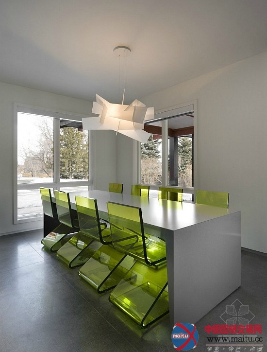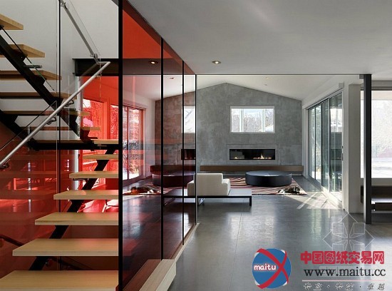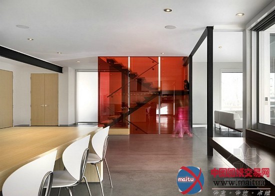 这是位于美国科罗拉多州博尔德的一间室第,由Arch11计划。他们的任务是想显现出一个简约的计划。两层楼高的赤色玻璃楼梯外壳让全部空间增色很多,而楼梯透明化的计划供应了一种视觉上的体验。地板外不雅的抛光混凝土转换成为壁炉墙,在多形性材料保持稳定, 只有外不雅纹理和色调的转变。