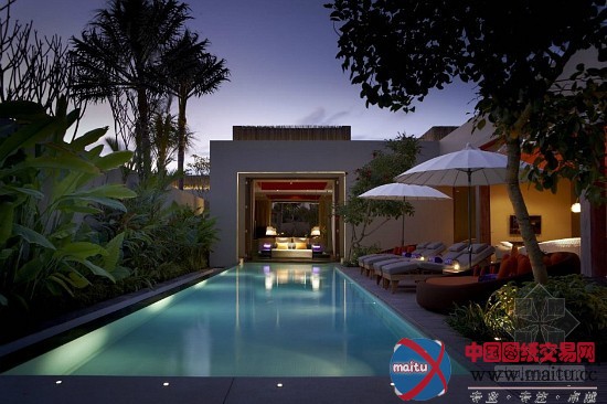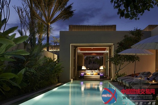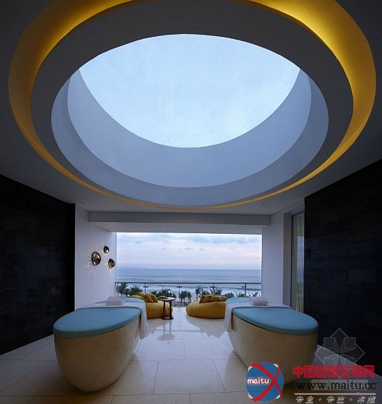 这是位于巴厘岛的一家旅店,因为地处塞米亚克,属于热带天色,以是计划中鼓动鼓励天然通风,能看到有的处所另有一个特别新颖的吊扇。SPA室中具有一个大年夜浴缸,顶部的吊灯计划仿佛把阳光引进了此中,让旅客真实的放松下来。