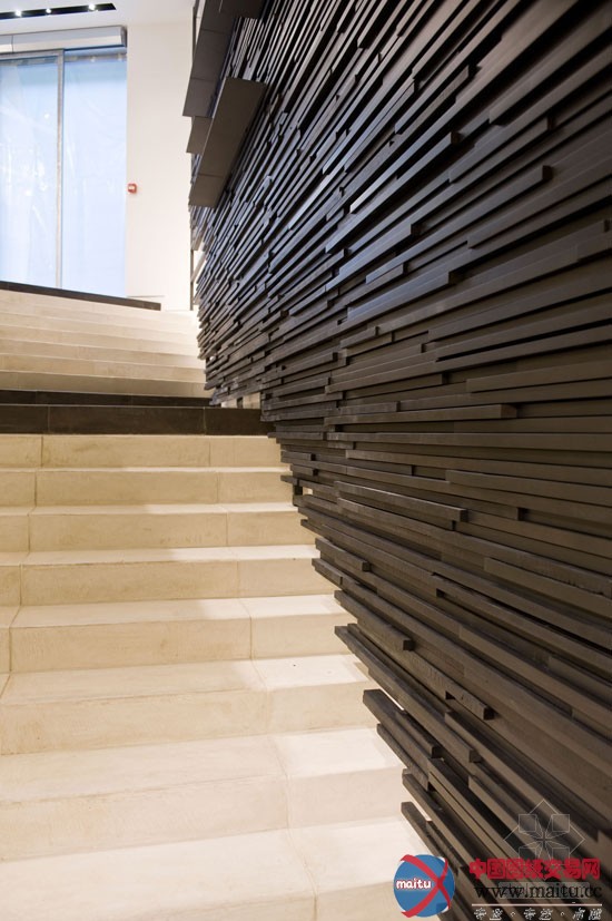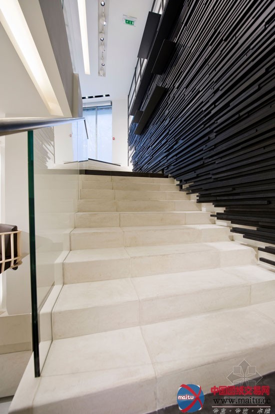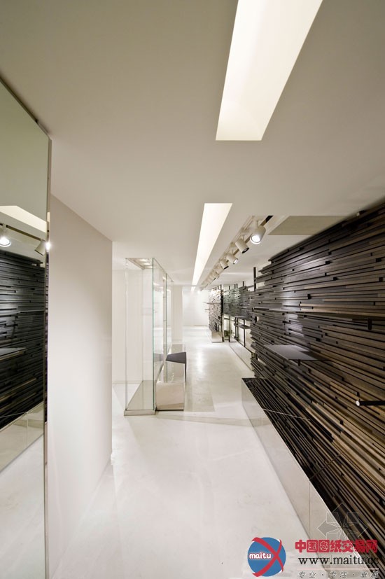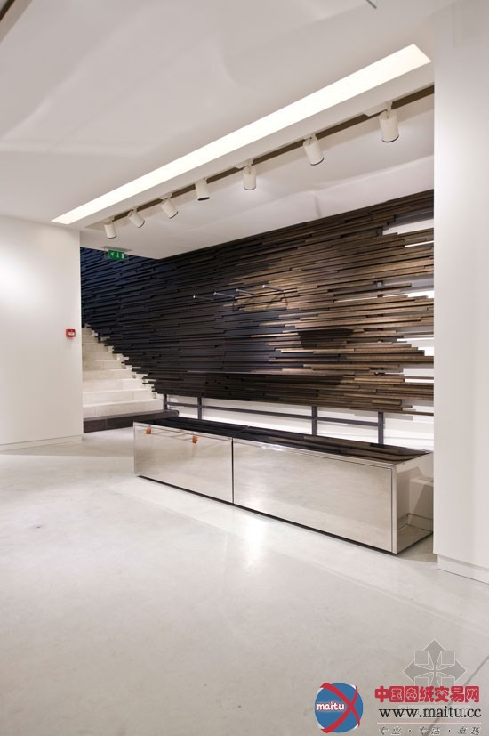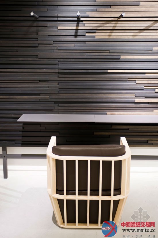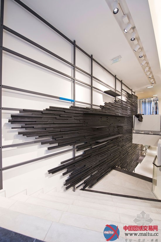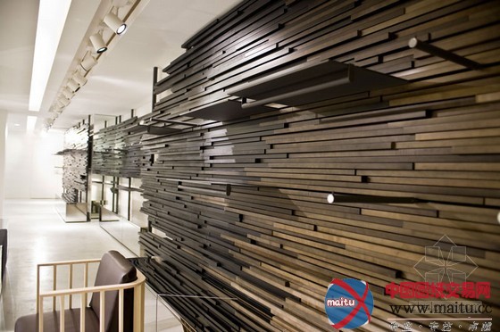 内饰方面,最凸起的特色是堆叠在一起凹凸有致的细木条纹墙饰,从实木原色到碳黑色渐变,特别非常搭配MFG看家货色牛仔布服饰的蓝色系。别的石灰地面、墙面的留白措置,和不锈钢玻璃展架的计划,也是从凸起 MFG 时尚裁缝光鲜色采的角度考虑。此种室内气焰将会统领今后 MFG 品牌店展在环球市场的扩建项目,只是会按照本地的文化背景,做超卓彩材质上的调剂,好比位于北京三里屯的店展计划,大概会在墙饰上附着金黄色。