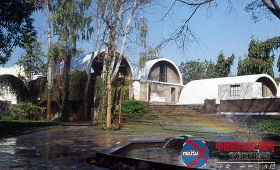 这是Balkrishna Doshi为本身计划的事情室,叫做Sangath,这是由一系列凹陷的陶瓷拼成的拱顶拼集而成,Sangath 事情室一样表达出了 Balkrishna Doshi 对天然和小我之间接洽的渴看。周围的修建经由过程扭转的凹凸、洞窟一样的空间、梯田和滑稽的水力槽和反射外不雅,将大年夜天然的每个细节都阐扬到了极致。事情室的周围是绿草如茵的梯形剧场和流水举措措施。考虑到要将这座修建很好的解释本身,Sangath 事情室是一件彻完整底的由 Doshi 之前作品的修建主题计划而成的组合修建,这些主题包含庞杂的室内计划、布局、恍惚的边缘、拱顶和梯田。