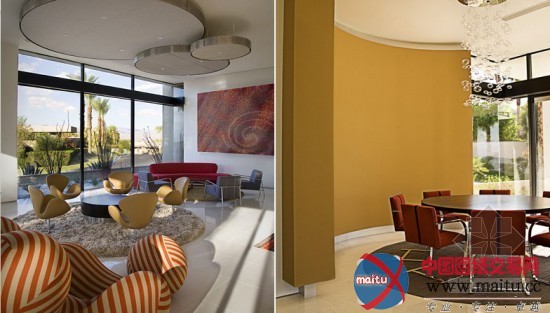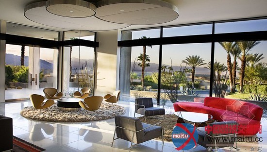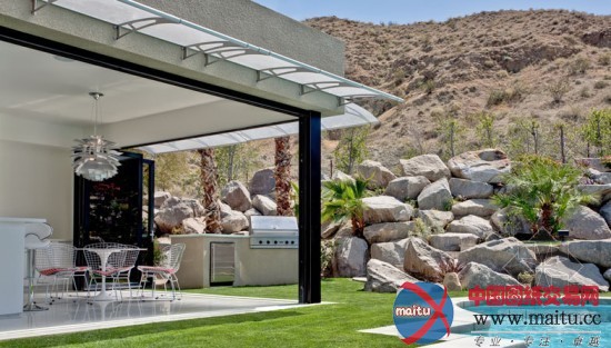 Dream Desert Home戈壁胡想屋坐落在美国加利福尼亚的兰乔米拉日市的戈壁边缘,在房屋内能看到大年夜漠无垠的风景和圣哈辛托山的灿艳风景。修建重塑了戈壁绿洲的观点,室内装修当代、简练明快,不雅赏风景的尽好住处。