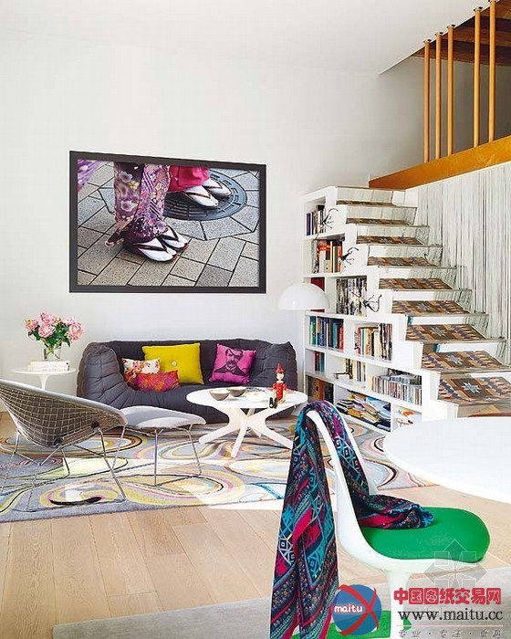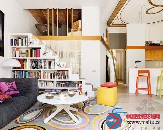 这是位于巴塞罗那的一间公寓,五彩斑斓是全部公寓的特色地点,这个公寓是西班牙白塞罗纳19世纪的一个修建。计划师用五彩缤纷的地毯作为分别空间的元素,非常奇特。