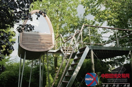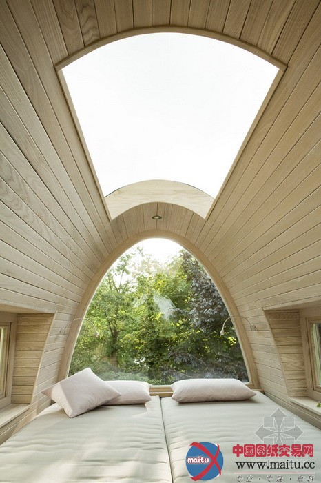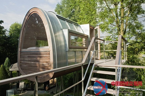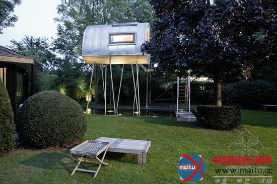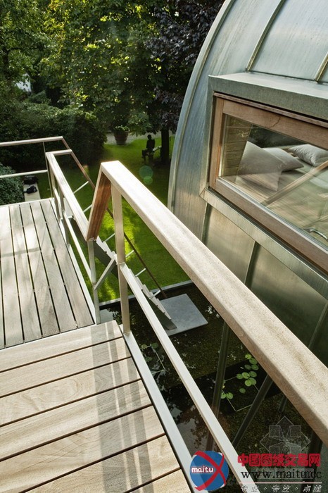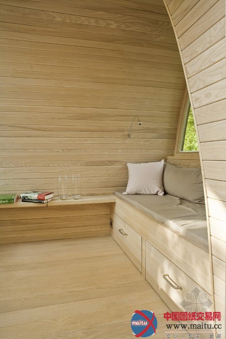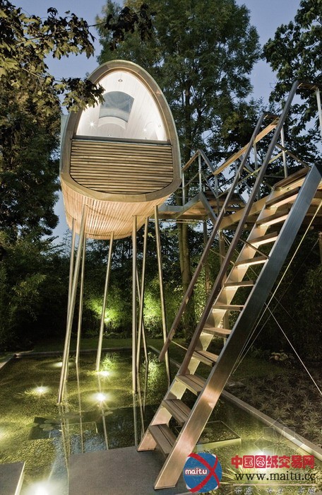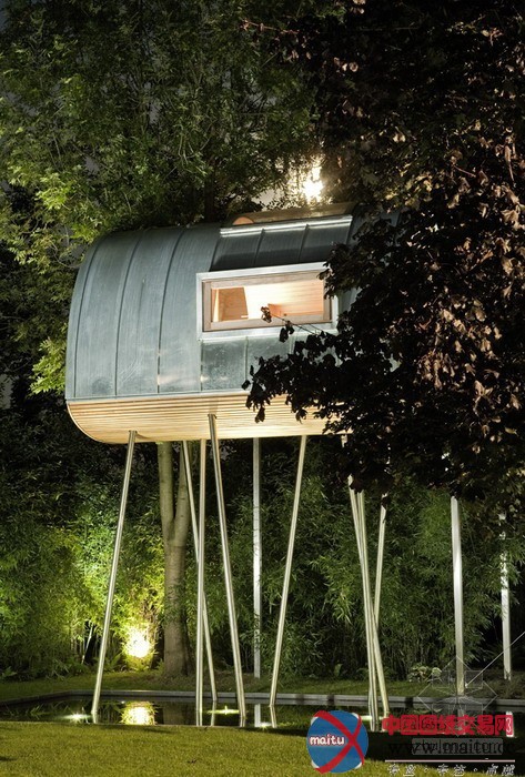 baumraum计划的Froschkönig室第,位于一座私家花圃的一个水池之上,精致奇妙,功效齐备。8根非对称的踏在水中的高跷将这个斗室子支持了起来,弧形的房顶由一层薄薄的锌板笼盖,下面是乳桑木。山墙上的窗户和巨大年夜的天窗使得内里的空间亮光非常。