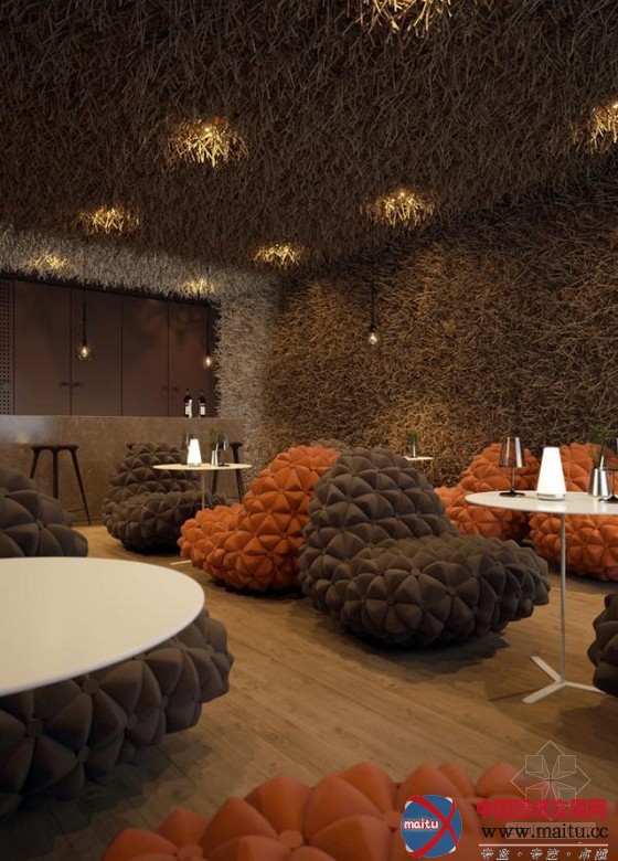 这是位于乌克兰的一家名为Twister的餐厅,内部计划方面很有特色,坐位给人的感触感染特别舒服,并且很有创意。全部座椅点亮了全部空间。