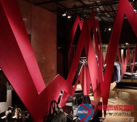 这是位于东京青山道的 Diesel 限量产品展厅,是由GENETO 修建计划事件所为其计划,计划时尚且本性,此中还着名为“Power plant”的大年夜型艺术装配。这个装配由28块赤色 Z 字形胶合板构成,大年夜大年夜地转变了主顾的视觉角度,也奥妙地节制着主顾对全部空间环境的体验。