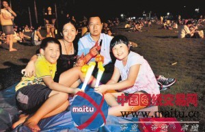 夜色渐沉。草坪上的人不见少,很多家庭里的爸爸早已架上了相机,记实下家人在一起的刹时。“看,待会玉轮从那边升起。”一名爸爸指着天空对孩子说。