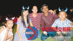 昨晚,市夷易近在莲花猴子园与外国友人一起弄月。