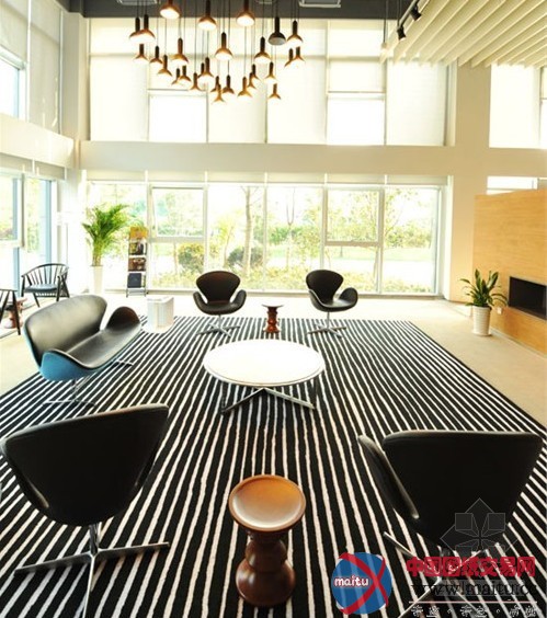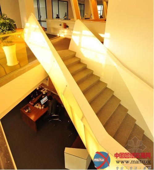 顶上错而稳定的灯光计划,在挑高的楼层中显得更加夺目。从一楼到二楼,假定有一个介质吸引你上往,那便是楼梯,扶手部被计划成具有钻石切面的凹凸,大年夜气另类。周围通透的落地玻璃,起首为集会室获得了一个好采光,更令与会者表情愉悦。清爽的白色编织座椅,淡雅的原木集会桌,身处此中,本来开会已不再烦闷。