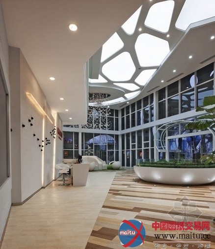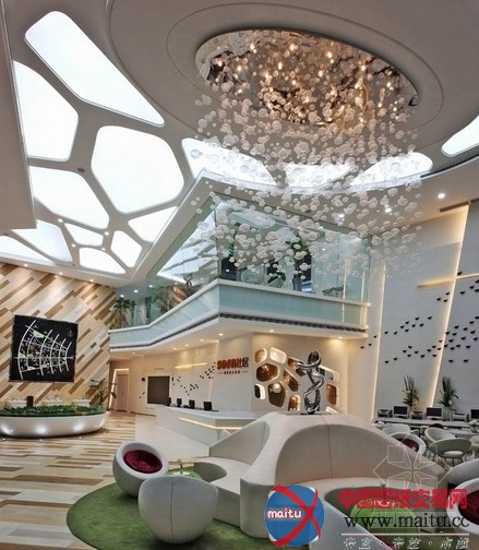 异形块面布局和动线组合,使空间团体从平平变得无邪起来。在一层空间里以大年夜沙盘为中心向两边发散,卡脖子区是一个独立的椭圆造型区,连络地面材质的豆割和墙面造形的指导,将全部空间奇妙的串连在一起,使全部空间仿佛跟着音乐在跳舞,看上往像一个音乐的盒子,经由过程材质、色采与造型的奇妙应用,营建出轻松、活泼、流畅而又充满魅力的时空感触感染。二层悬挑的展现厅是本案的计划亮点,倾斜的玻璃隔墙动感别致,墙面造型的转变共同团体气焰。 “房子里的房子,空间里的空间”,好的室内计划是从修建空间里发展出来的,是修建代价的发掘和提升。