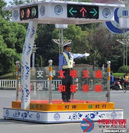 国内首个青花瓷交警岗亭亮相