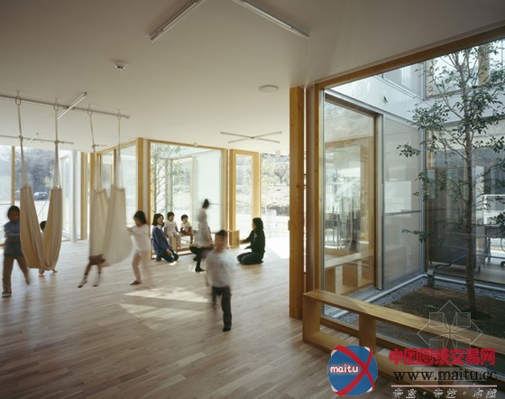 这所复合式的修建是由新教派教堂管理下的私立黉舍和幼儿园构成的。黉舍位于横滨的一块绿化地区,周围有游乐场、公园,另有些小的丘陵。客户打算将此地计划成为供孩子们与高中生一起文娱的绿色丛林。计划师贯穿丛林划出一条线,使黉舍和周围的树木分开。这个房子建在丛林中,木质的框架让它看起来像一个简略单纯的格栏。考虑到它是供孩子们利用的,计划师特意加强了修建物的抗震性,别离在五个庭院部门利用了钢布局。修建物从里到外都是透明的木质修建格栏,木质地板和木质窗扇。滑动的玻璃门窗就是一面分开表里的分界面。阳光穿过树枝洒在室内,轻风掠过树丛飘进房间。在室内时,人们感触感染像是在丛林中,在户外时,人们误觉得是在室内。如许一来,孩子们在这里便可以完整放松,纵情玩耍。