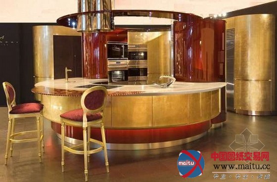 团体看来,厨房显现为半圆形,厨具和冰箱位于厨房中心,周围设有把持台和早餐吧台。据悉,这套厨房的造价比英国一栋房子的平均代价还要高。