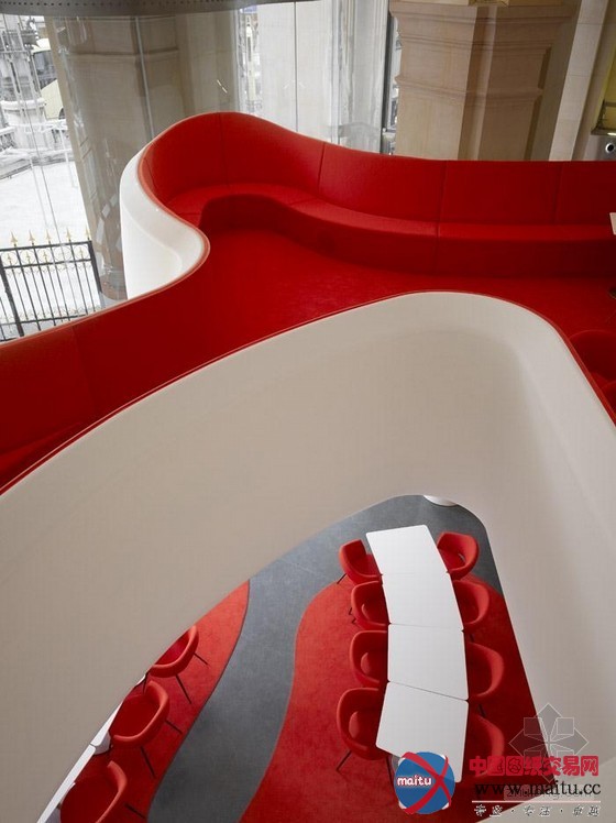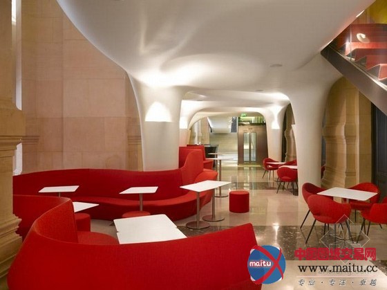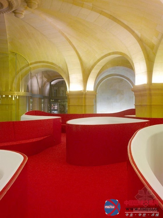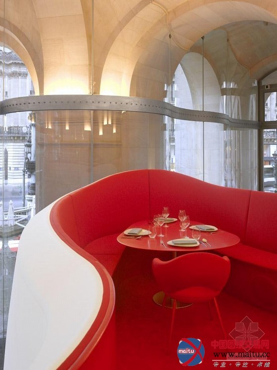 这是闻名的巴黎卡尼尔歌剧院,给大年夜家介绍的是餐厅计划。空中浮动着变化多端的曲线限定出了各个曲折起伏的用餐空间。在老修建中装修,计划师不承诺破坏任何布局---墙壁,柱子,天花板。窗户是波浪状的玻璃,内部供应90人的餐位。内部用石膏做出颇具将来感的云形体量,在超卓的曲线转变中,构成起伏,拱门,卷盖。限定出开放恍惚的空间。上层采取热和的赤色色调,这里是密切的私家空间,红地毯一向舒展到基层黑色地面。这是一个没有摹拟陈腐的空间,采取尊敬的立场,同时又具有当代性的立场。