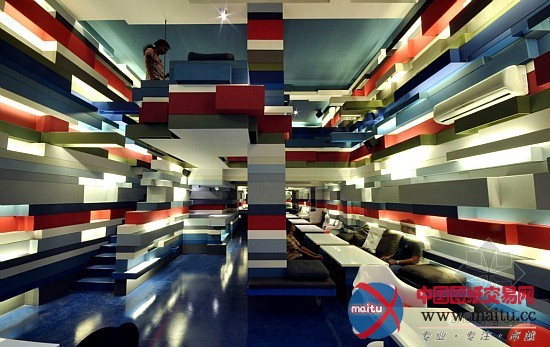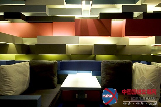 这是由曼奇尼计划的摩卡在印度的MOJO咖啡馆。计划师采取了当代主义内饰手打,减少了功效主义,注进了20世纪60、70年代的“敷裕”和“装潢品”旧本质。全部空间给人的第一印象就是五彩斑斓的感触感染,这也是摩卡咖啡想要给客户带来的一种全新的体验,让这个咖啡馆空间变得更加活泼。