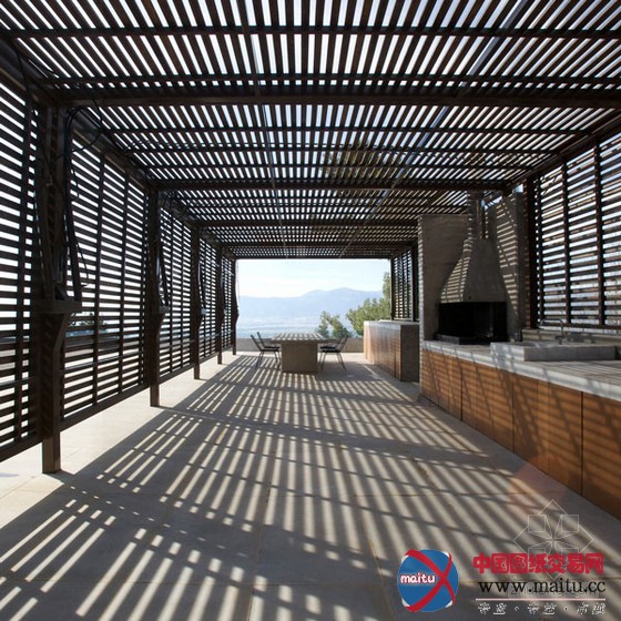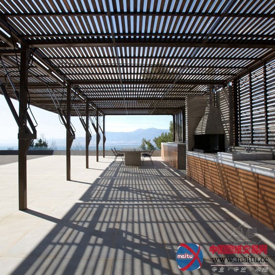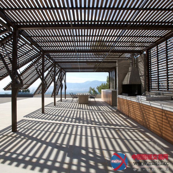 希腊事情室 K-studio计划的希腊Frame室第,位于雅典北部郊区山丘上。房子的西南朝向能俯瞰壮阔的都会景不雅,东北朝向则作为首要进口,面对山坡和街道。修建是一个简练的白色长方体,在临街的一面,房子被围墙和混凝土迎宾进口围困。院落北侧的木格栅走廊能起到防风感化,同时也作为一处庇荫的休闲地区,由一系列液压活塞驱动,面对走廊一侧的格栅可以开启。修建外部的钢布局装潢让房子与天然光产生互动,产生一系列奇妙的光影转变。