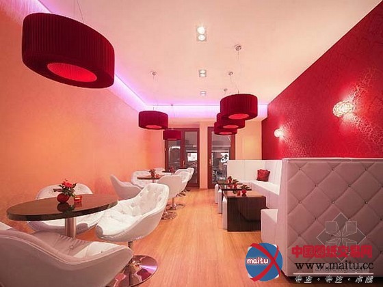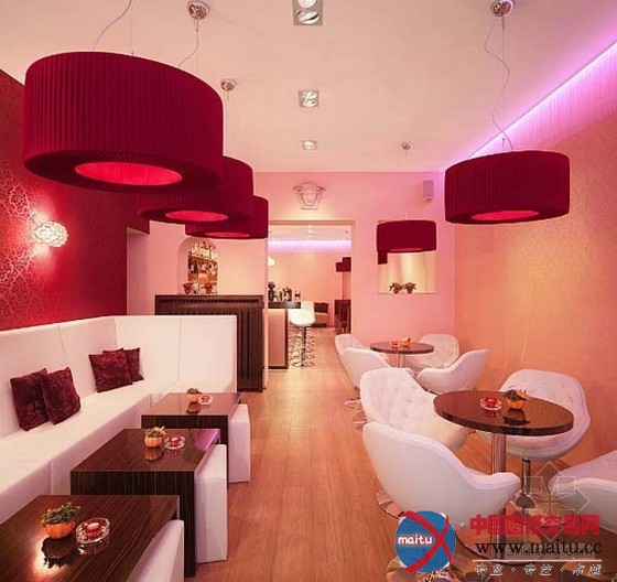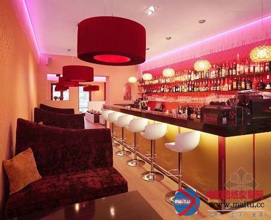 这是位于德国柏林的一间占地140平米的酒吧,是由德国修建&室内计划公司Berlin Rodeo完成计划。这间酒吧的特别的地方在于它所披发出的雄浑堂皇的气息,在光影交织当中,各种计划元素构建出一个最合适文娱消遣的空间。这个时尚酒吧充分利用其每寸空间,力求为客户打造出与朋友及熟人在一起的恬逸放松的奇妙光阴。在色调上采取红、白、金的富丽色采搭配,付与空间一种豪华感。白色沙发及座椅、木质桌和大年夜赤色灿艳且富有质感的壁纸使得进口处熠熠生辉,而当代感实足的白色高脚凳及深赤色沙发则将这类气质连续到狭长的楼面背部——吧台地区。