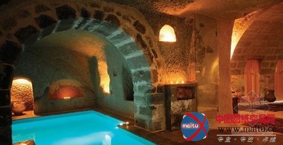 石头墙壁、拱顶、圆柱、横梁暴露在外的木制天花板和中世纪般的庭院都值得你停下脚步,细细不雅赏它们历经光阴沧桑的大年夜气之美。室内的壁炉更增加了一股热和的气息,室内泳池也令人赞叹,让人想起儒勒·凡尔纳(Jules Verne)笔下埋在地底下的湖泊的故事。