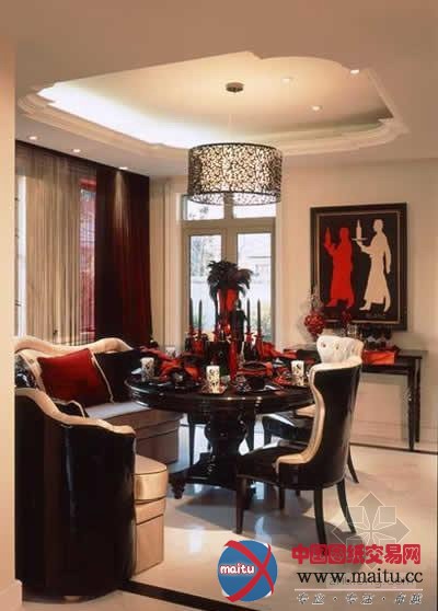 家具根基以黑色、喷鼻槟金和赤色为主色调,但这几种色采不是毫无事理地拼集,而是在视觉上的比重让人感触感染恰到好处,不偏不倚。窗帘、床品等布艺部门则大年夜量用了美丽猛烈热烈的赤色,本性特别非常张扬,故意的人还会发明许多值得玩味的细节。全部的装潢画,都是由黑、白、金、红几种色彩构成,题材近似欧洲小酒馆里的招贴画,它们使得诺大年夜的白色墙面不再无趣。客堂一侧的不锈钢壁炉,合勤奋效已不大年夜,但它有一个好处就是让无话可说的客人找到一个比评论天色更风趣的话题。