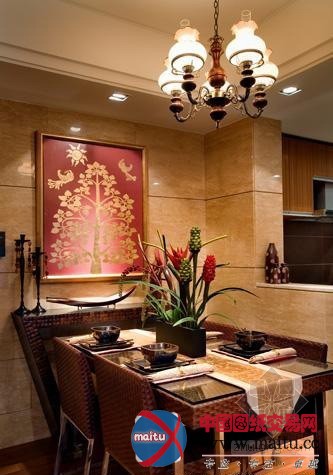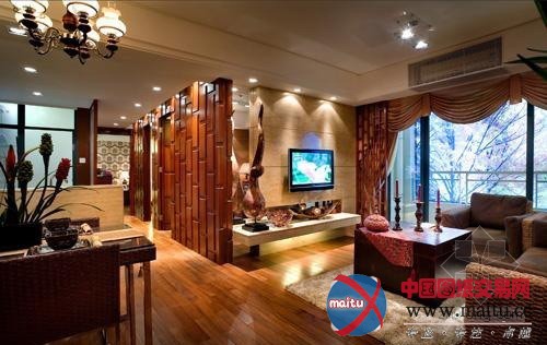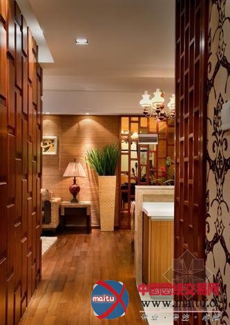 这是位于东莞凤岗财产新地的凤岗样板房,通往主卧和次卧的通道,立面柚木面板的墙,取只东南亚村落奇特木制修建常见的布局,而这类纹样在空间内一向是贯穿的,次卧门造法不异于立面,目标是让造型更完整性。 地面的实木地板、藤条家私,白洞石和东南亚气焰的饰品,更表现本身气焰的同等性,电视背景墙的清镜在俭朴当中略带当代也给空间营建深远的感触感染。