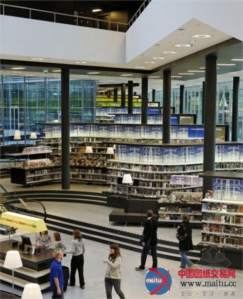 这是荷兰Almere新藏书楼,面积达到了5000平方米,内里有长长的蜿蜒书架,上彀区,浏览咖啡馆,研讨部,多媒体区。 藏书楼计划分类特别非常清晰,可让有明白目标的主顾直接找到本身想要的书,也能让没有明白目标的主顾,在书架中渐渐的随便发明册本,摸索不合的天下,在肆意处所坐下来。这些蜿蜒的书架构成了一副不合平常的景象形象。加上别的的功效集成:座椅,事情场合,信息终端,柜台,沙发,书厨照明,共同构成了一个完整调和的藏书楼计划。咖啡厅在修建进口上方的二楼,罕见百种报刊杂志,另有最新消息表现器。游戏和多媒体区在四楼一个圆形的地区,而游戏的内容可以被实事播放到修建表面,面向都会广场的大年夜表现屏上,使藏书楼显得更加有活气。