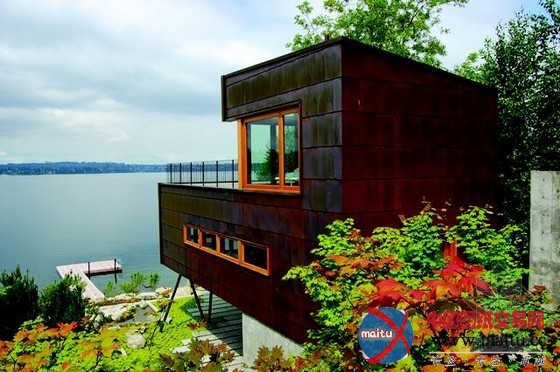 这是 Hutchison & Maul Architecture 为客户计划的一个不雅光室第,位于华盛顿州风景美好的墨瑟岛沿岸。房子选在了法规承诺的离湖边比来的处所,并在外部庭院的根本上特意加高。房子的外立面利用了随时候推移色彩随之转变的铜壁板,内部的装潢与家具计划则充满了阳光与天然。