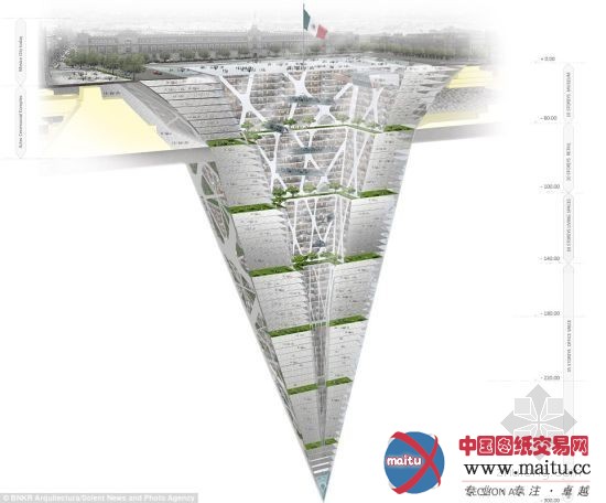 修建师埃斯特万·苏亚雷斯说:“它是一个倒转的金字塔,上部能让栖身空间享受天然采光和通风。同时,它还能让都会广场上每年不成胜数的活动正常举行。这些活动包含音乐会、露天展览和阅兵式等。”为便利出行,计划师还在地下“摩天楼”最上几层计划出进口,纵贯地铁。