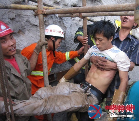 一男子跌入地基坑 钢筋插入大腿血流不止