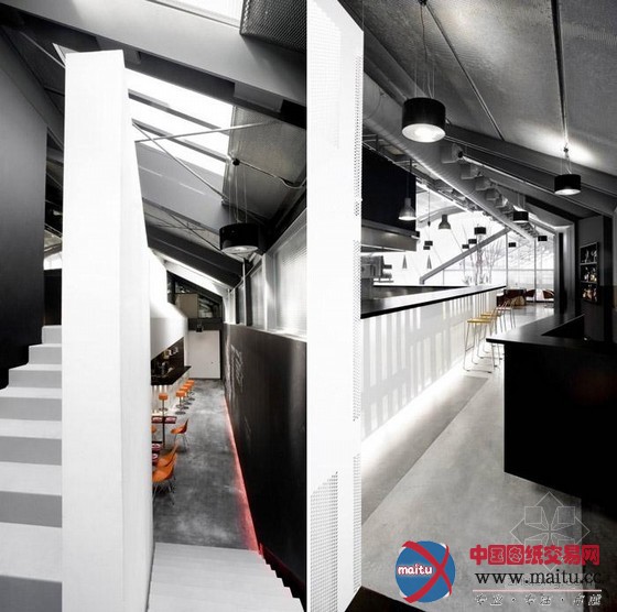 这个面积500平方米的餐厅位于西班牙巴塞罗拉,属于米其林星级高等餐厅。一共两层,吧台区可以直接瞥见料理制作过程,用餐区的地面有三种强度的灰色,让每个餐区都具有本性化空间,从而制止了大年夜饭厅的感触感染。墙壁是黑色,增加纵深感。修建师应用钢板和混凝土打造出团体颇具财产感的氛围。钢板被穿孔并涂成白色,有用的办理了餐厅声学及照明等问题:板接收声音,而灯光从板背面漫射出来。